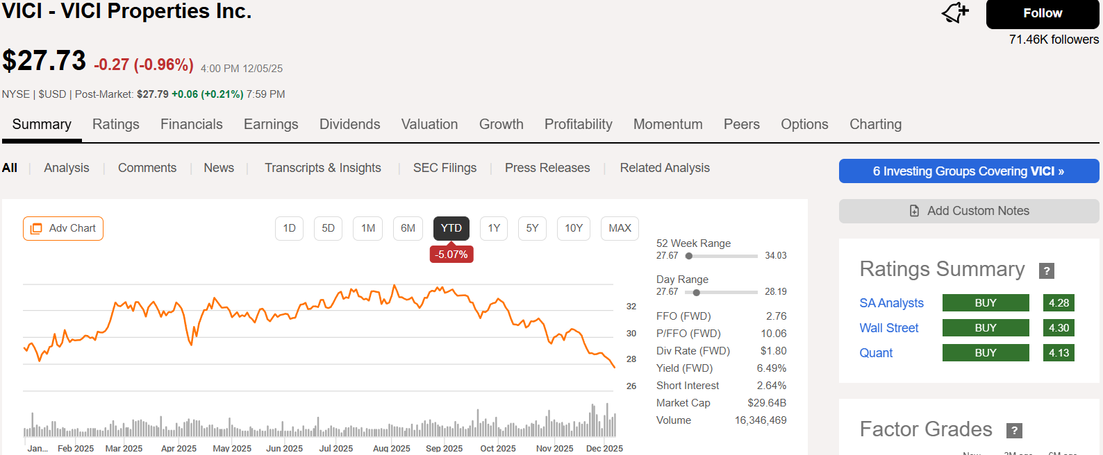 Despite its high-quality assets and dependable rent income, VICI has had a rough stretch in 2025.