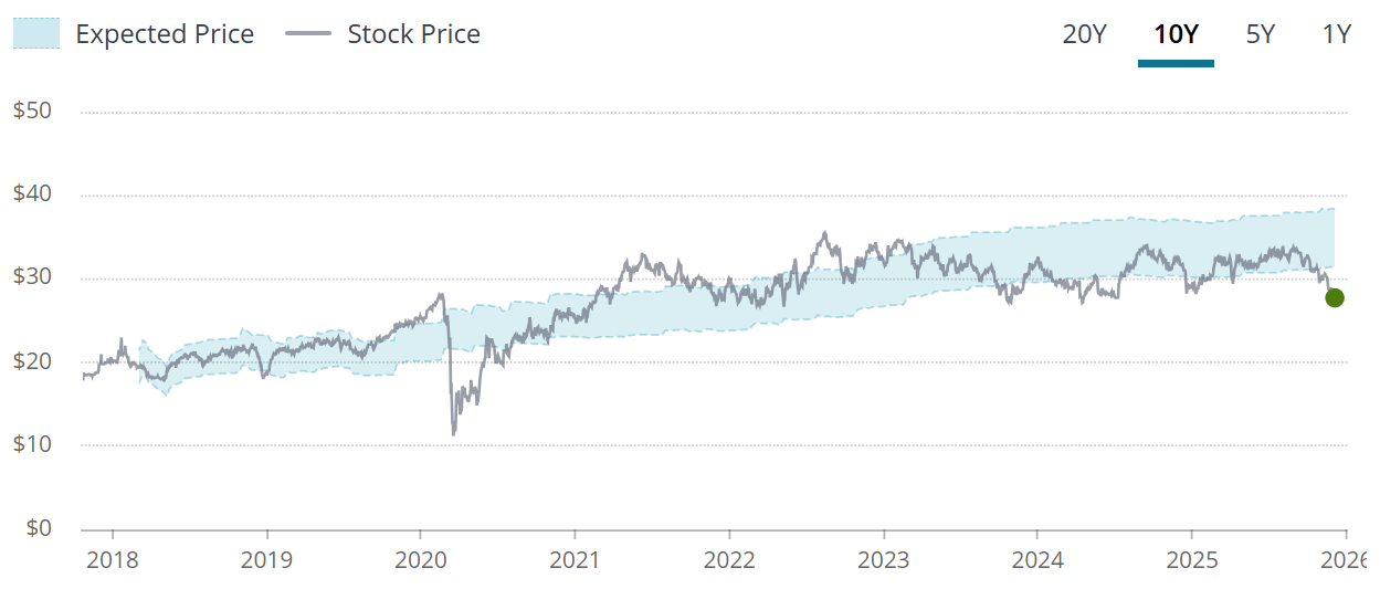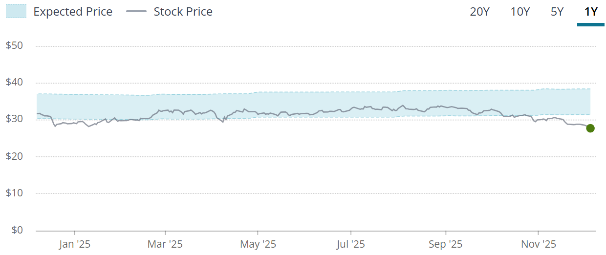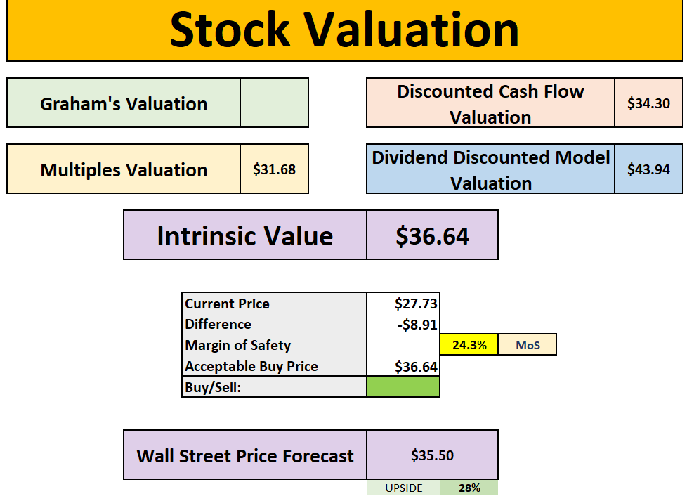 Using the 3 models, we get the average price arriving at $36.64 meaning investors are getting a 24% margin of safety, with Wall Street seeing this at $35.50 into 2026, highlighting 28% upside.