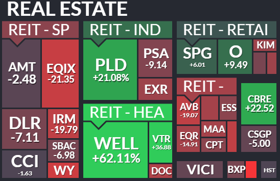 Higher rates make income-producing real estate less attractive compared to safer yields in Treasuries, leading many investors to rotate out of REITs altogether.