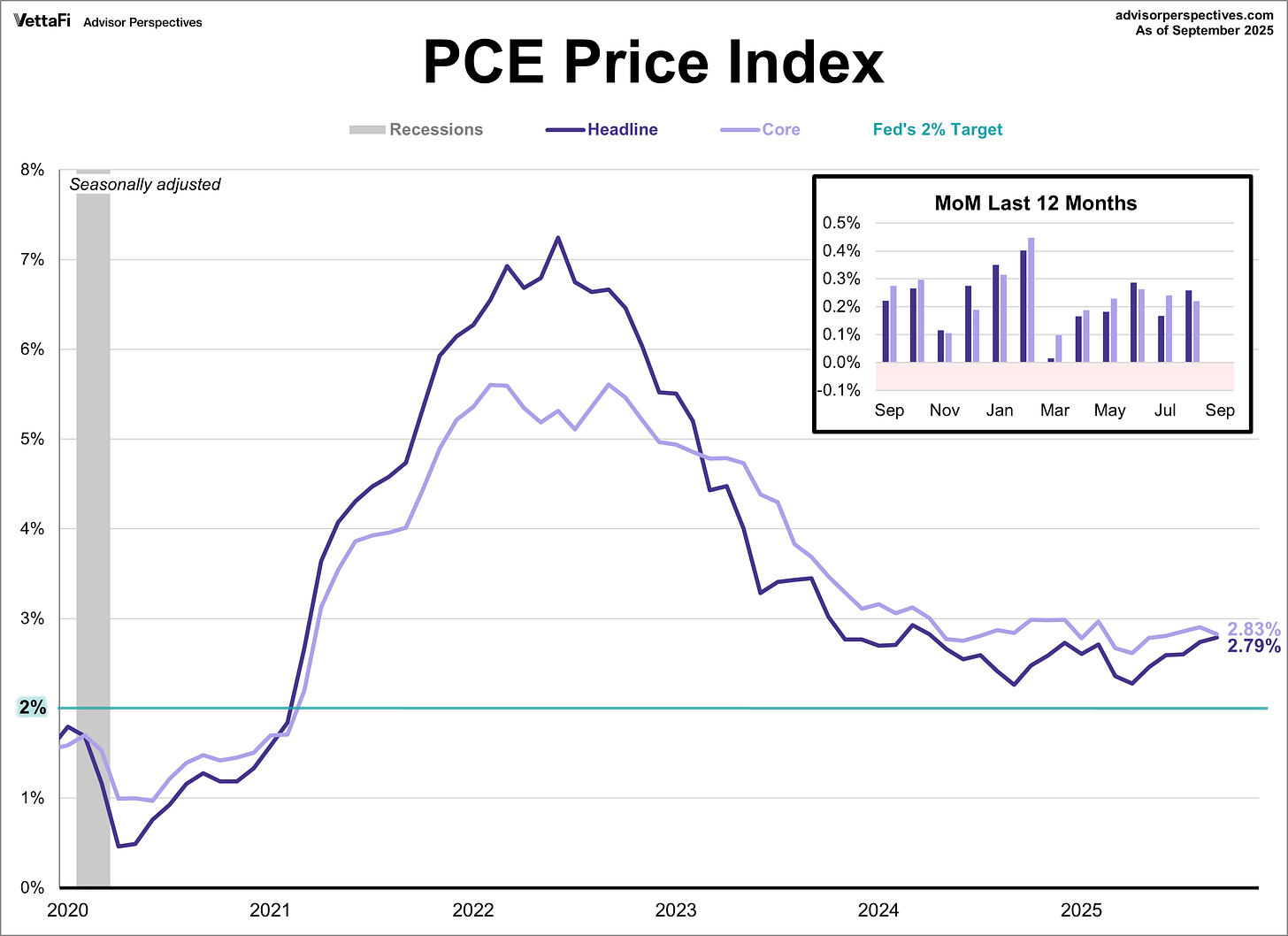 Inflation? Still sticky, still inching along. September’s PCE report (finally released after delays) showed little change, keeping both headline and core inflation at 2.8% year over year. Consumer sentiment, though, ticked up slightly as people felt a bit more optimistic about their personal finances - even if high prices remain a stubborn weight.