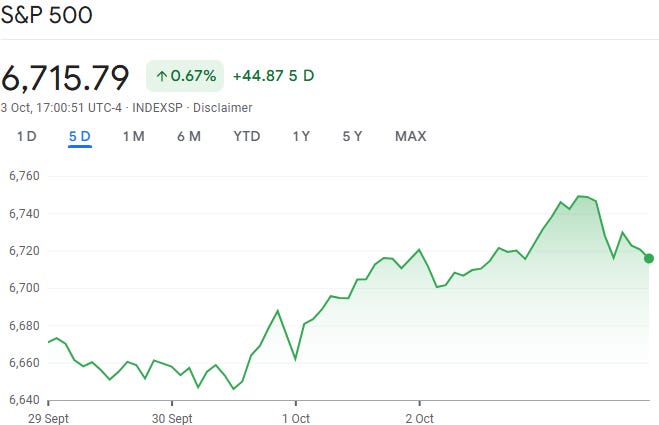 The third quarter ended strong: S&P 500 up 8%, Nasdaq up 11%, and small caps (Russell 2000) up 12%. The S&P even logged three new all-time highs, bringing the 2025 total to 31.