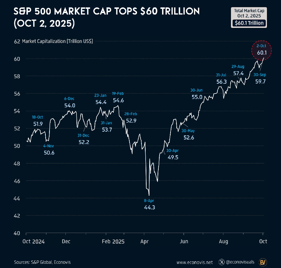 We also saw the S&P 500 market cap climb over $60 Trillion for the first time ever.