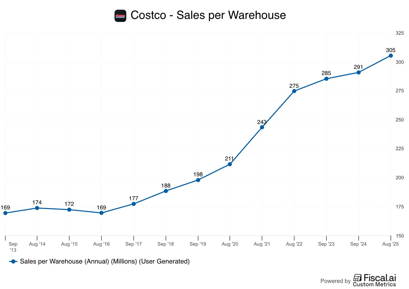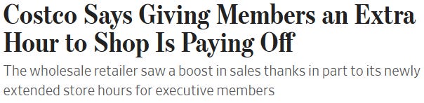 Costco has increased the sales they generate per warehouse by 50% from just 5 years ago.