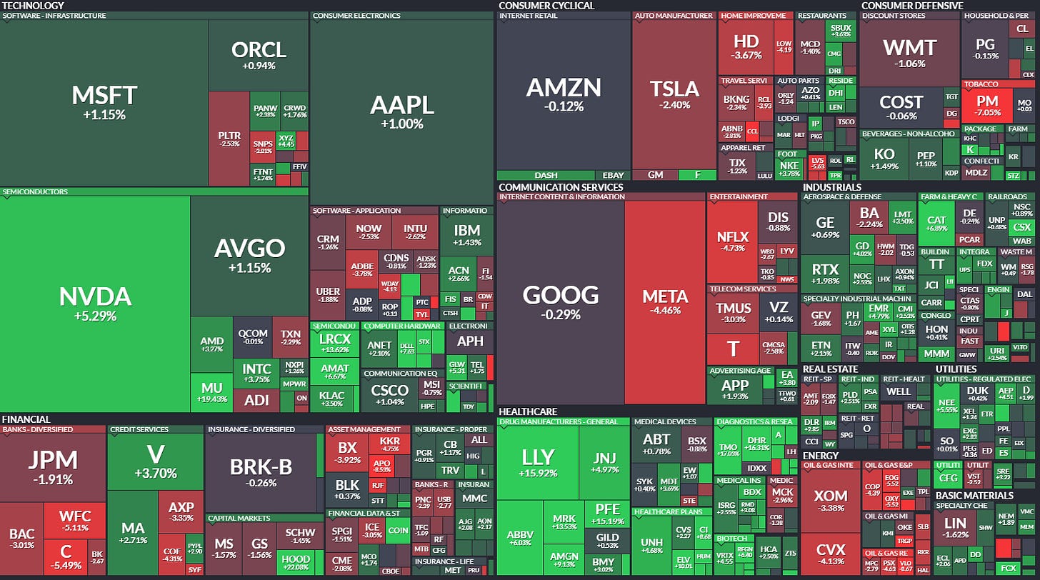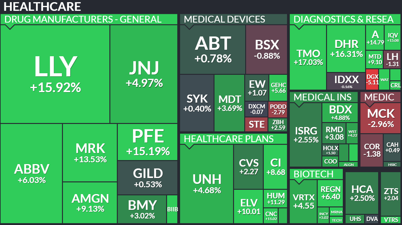 Broad rally: Roughly 70% of healthcare stocks in the S&P 500 hit new 5-day highs, showing strong sector-wide momentum.