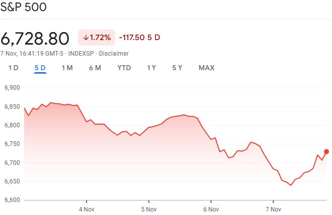 But it wasn’t just tech jitters. The ongoing U.S. government shutdown - now the longest on record - started to seep into market sentiment. Headlines about the FAA reducing flight traffic and growing concerns over the impact on GDP made investors a little more cautious heading into November.
