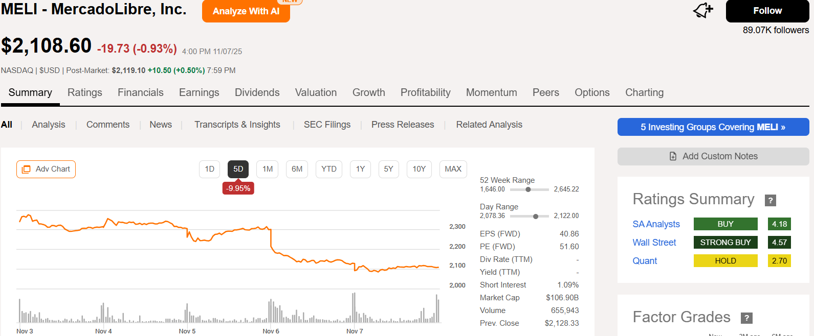 MercadoLibre delivered a strong top line again, but the market’s reaction shows investors are leaning heavily into the margin and profitability story.