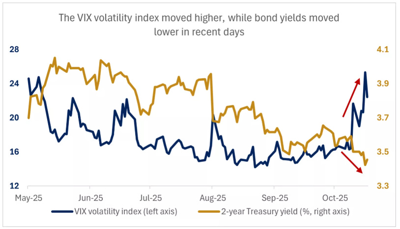 But not everything was smooth sailing. Midweek, regional bank worries resurfaced after a couple of lenders flagged potential loan fraud issues, reigniting concerns about credit quality. That spike in uncertainty briefly sent volatility to its highest level since April before markets recovered into the weekend.