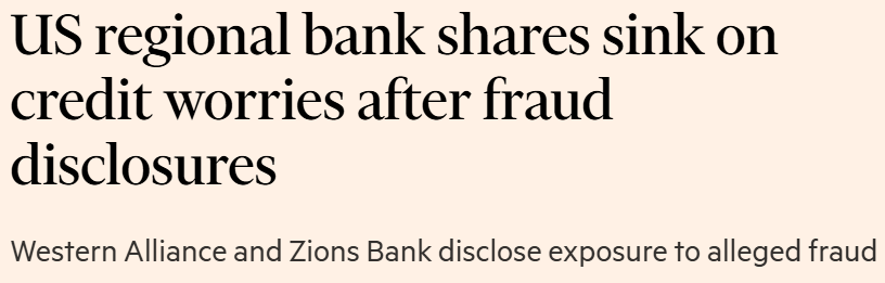 Regional Bank Worries: A few smaller banks, like Zions and Western Alliance, disclosed loan fraud losses, sparking renewed concern. Larger banks remain solid, but investors are watching credit quality closely.