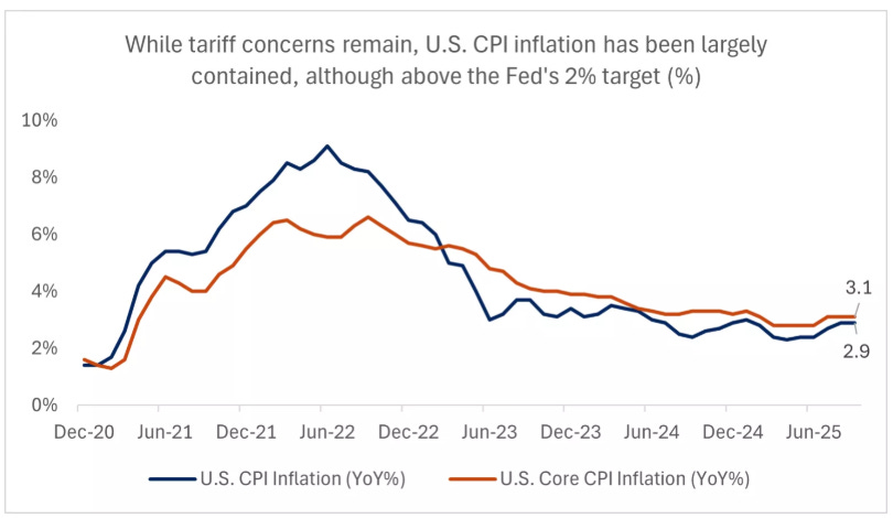 Trade & Policy Risks: Tensions between the U.S. and China are flaring again, but a potential meeting between Trump and Xi later this month could cool things down. Meanwhile, the U.S. government shutdown — now in its third week — risks trimming economic growth if it drags on.
