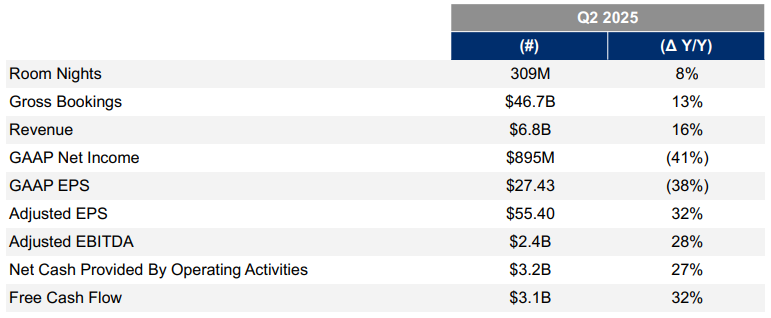 Booking Holdings actually posted a strong Q2 FY25 on paper. Revenue was up around 16% year-over-year, adjusted earnings jumped more than 30%, and cash flow remained healthy.