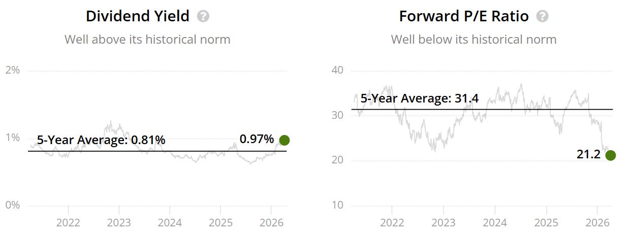 That is a meaningful reset for one of the market’s highest-quality businesses and immediately puts the stock back into serious consideration from a valuation perspective.