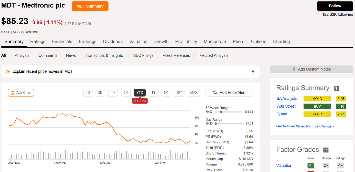 A stock that came close, but still did not make the cut: Medtronic