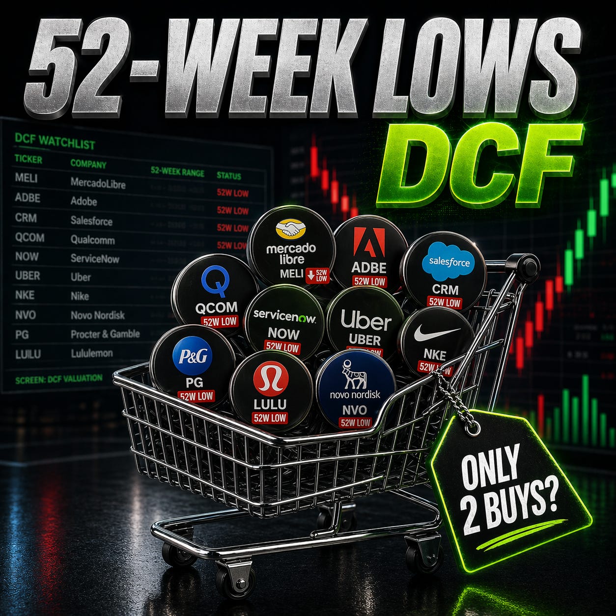 Instead, I re-ran the valuation work on a basket of stocks trading near 52-week lows, using a DCF-based framework to see which names still offered a real margin of safety - and which ones only looked cheap because the market had already priced in a weaker future.