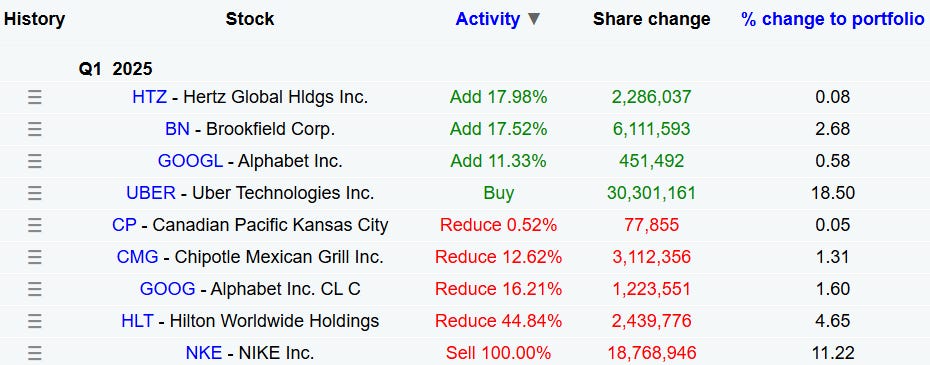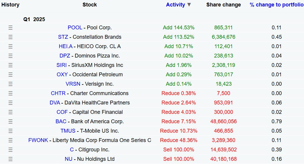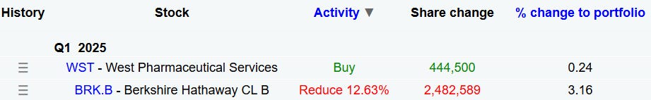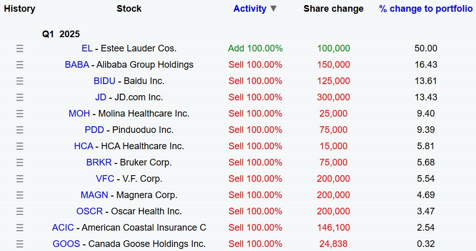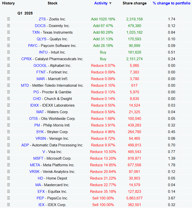 Their new portfolio is shown here and we have gone to the detail of explaining his key individual moves for Q1 2025 below: