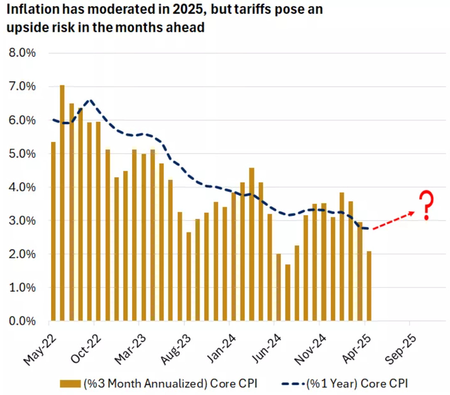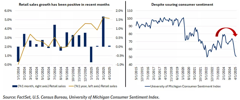 Soft data like consumer sentiment has been weak, with the University of Michigan’s index falling nearly 30% since January amid inflation and tariff concerns.
