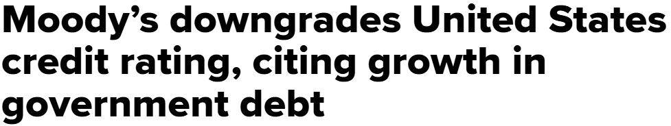 Last week, Moody’s downgraded the U.S. credit rating from Aaa to Aa1 due to rising deficits and growing national debt.