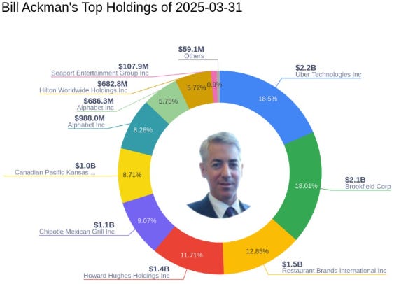 He also continues to top up BN which is his 2nd largest holding, only marginally smaller than UBER sitting at 18%.