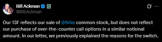 So essentially, Ackman actually bought Nike using options, not regular shares.