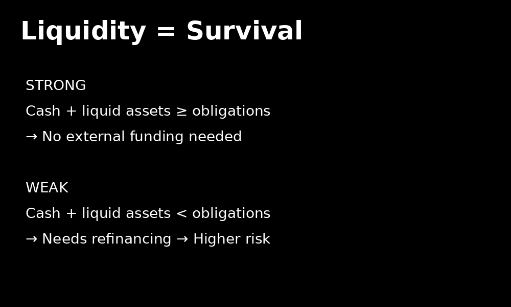 Simple framework: liquidity determines whether a company can survive short-term stress.